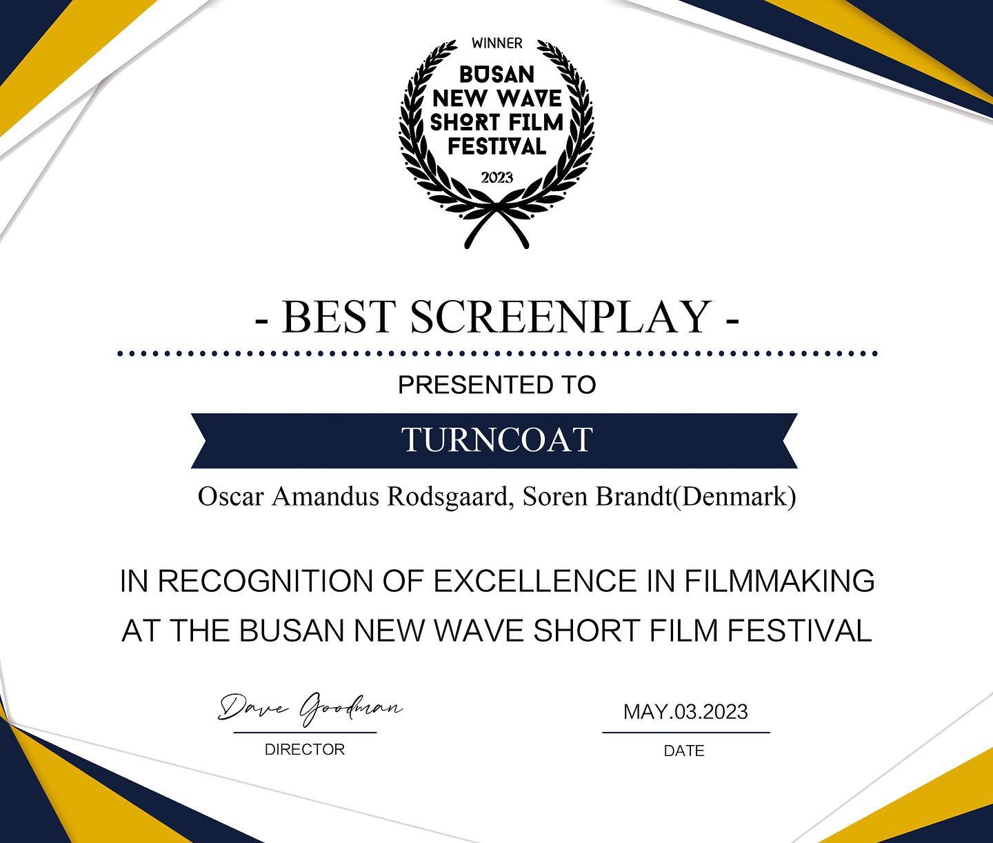 Vinder af Best screenplay i Busan New Wave Short Film Festival April 2023